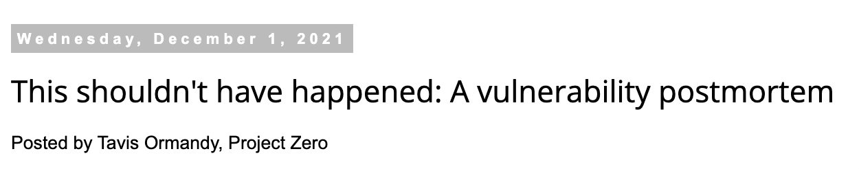 One can see parallels to traditional security, as with Google Project Zero's port-mortem of the NSS overflow.